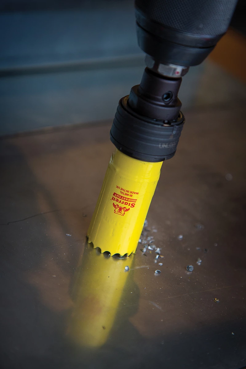 Für Lochsägendurchmesser von 14 bis 30 mm ist eine Welle von 6,5 mm erforderlich; bei Lochsägendurchmessern von 23 bis 152 mm muss die Wellengröße 9,5 mm betragen